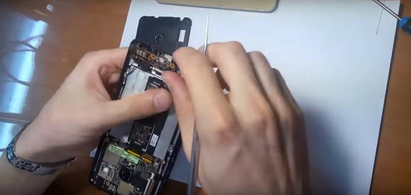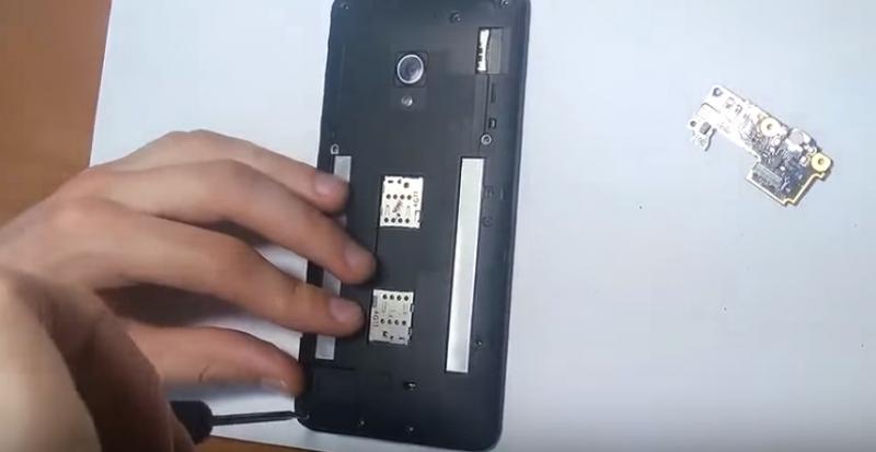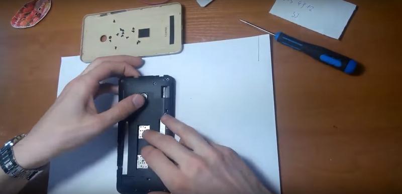 Для начала открываем заднюю панель смартфона и скручиваем винты.